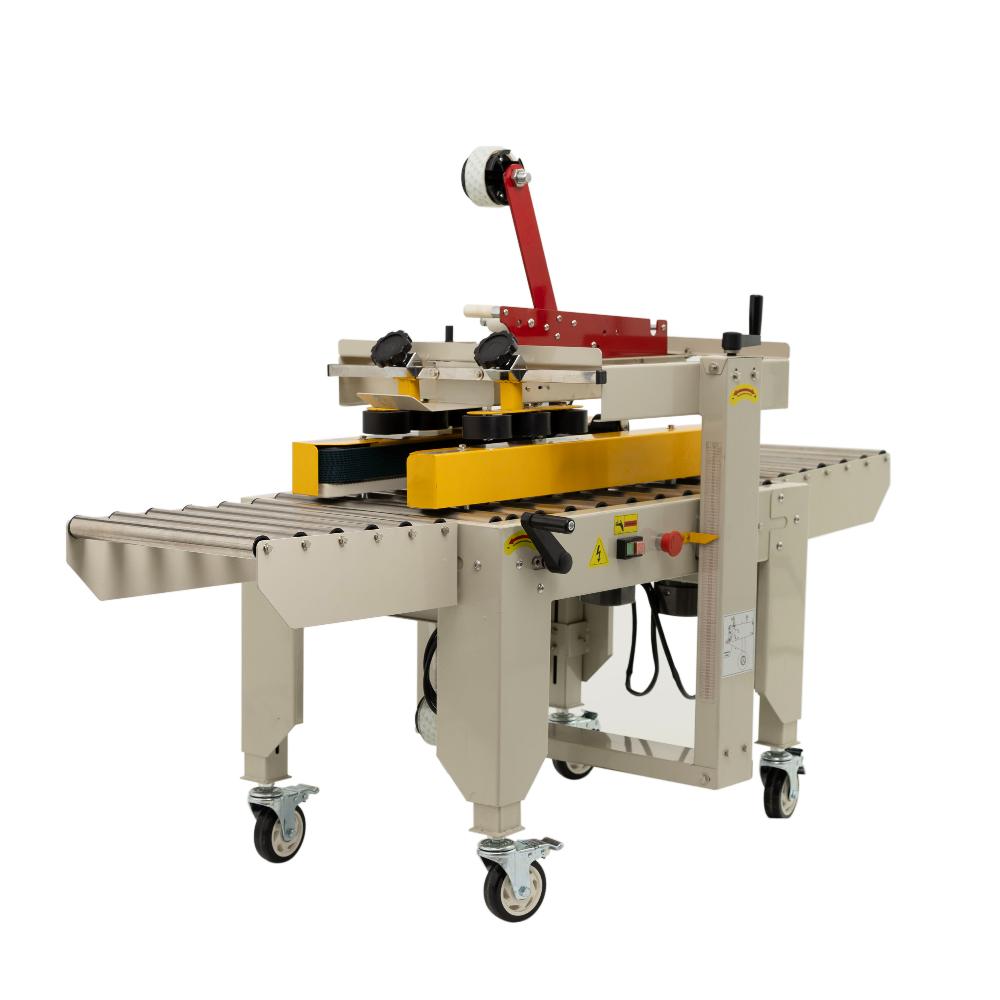 это профессиональное оборудование для быстрой и аккуратной заклейки верхних и нижних стыков картонных коробов клейкой лентой (скотчем). Модель предназначена для малых и средних предприятий в сфере пищевого производства, упаковки и фасовки, складской логистики и интернет-торговли. Заклейщик оснащён боковыми конвейерными ремнями для автоматической протяжки короба, что обеспечивает непрерывный процесс упаковки без необходимости постоянного присутствия оператора.