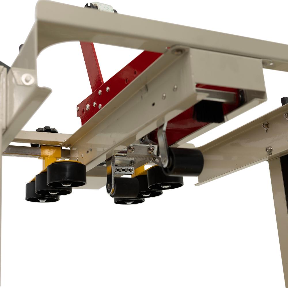 - Компактность и мобильность. Регулируемая высота стола (550–720 мм) позволяет вписать заклейщик в производственную линию. При необходимости оборудование можно перемещать по цеху без потери настроек.